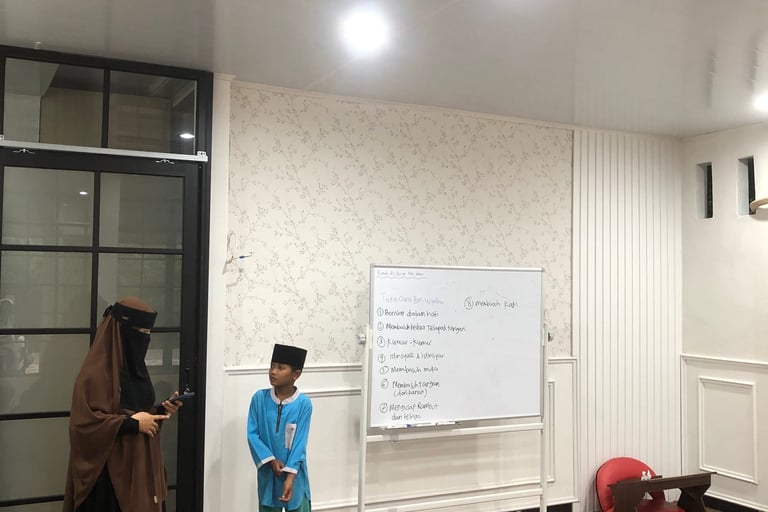 ruang belajar yang sederhana namun penuh keberkahan, seorang anak berdiri dengan hati yang teguh. Ia datang setiap hari dengan niat yang lurus—belajar agama Allah dengan sungguh-sungguh, karena ia tahu bahwa ilmu syar’i adalah cahaya yang menuntun langkah di dunia dan keselamatan di akhirat. Setiap ayat yang ia baca, setiap hadits yang ia hafal, dan setiap pelajaran akhlak yang ia pelajari semakin menguatkan dirinya untuk menjadi hamba Allah yang taat.